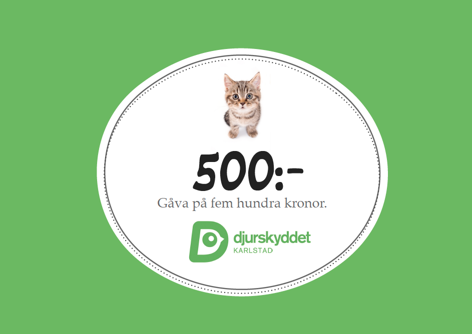 Du kan beställa gåvobevis i olika valörer och med olika/anpassad text. Skicka din beställning/dina önskemål till kontakt@djurskyddetkarlstad.se.