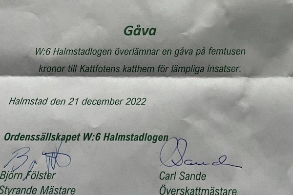 Vi tackar W6 ödmjukast för generös gåva till katthemmet! Vi är så tacksamma