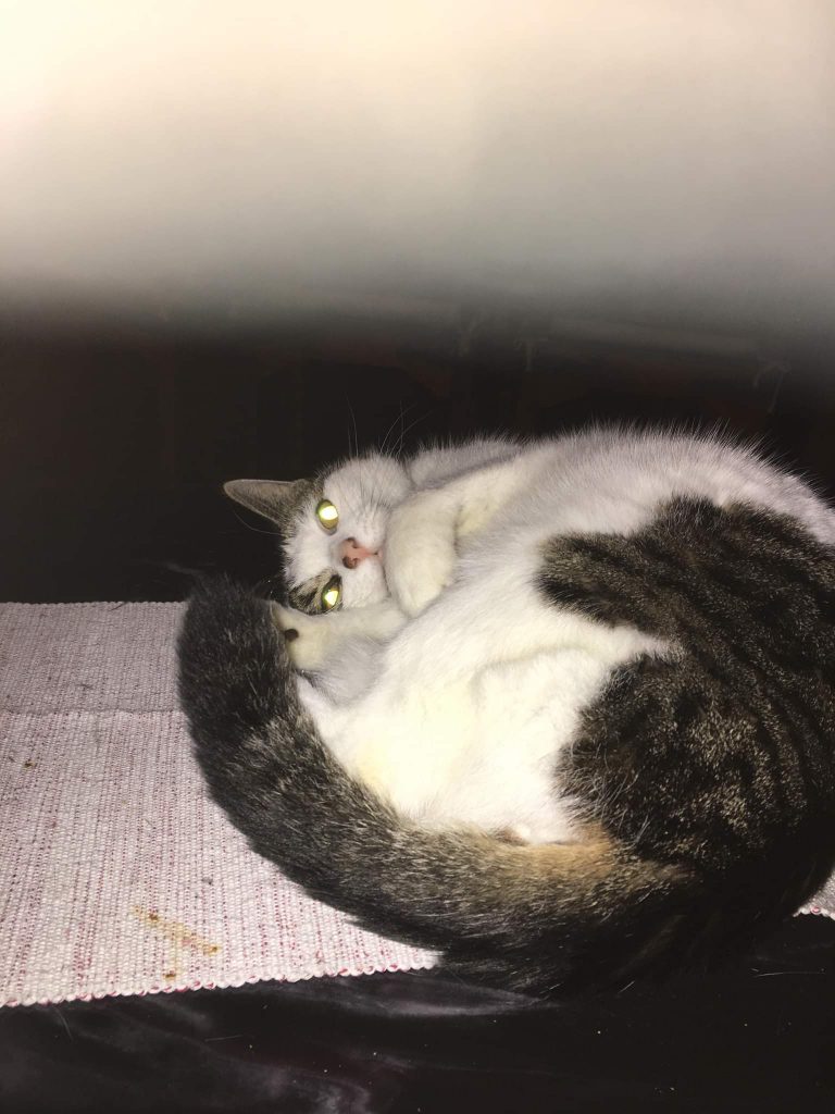 Hej, jag heter Castro och bor i Ätran, det var 13 år sedan jag flyttade hit. Idag är jag fjorton år och lika gosig som förut. Matte säger att jag är kelen och spinner jättemycket!