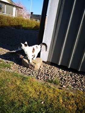Yoda här, jag adopterades tillsammans med min bror Bumblebee 2013. Jag var väldigt skygg i början och gömde mig nästan i två veckor i en klösmöbel som mitt adoptivhem hade köpt. Efter ett tag började jag komma fram och vänja mig vid min nya familj. Nu är jag världens kelgris och sitter gärna med min familj i soffan på kvällarna. När de adopterade mig trodde personalen på Kattfoten att jag skulle trivas bäst som innekatt, men när vi flyttade ut på landet fick jag prova att vara ute. Nu 4 år senare är jag ute hela dagarna på våren och sommaren. Och en sak är säkert, min familj behöver aldrig vara oroliga över att försova sig, för nästan prick 05:30 varje morgon, går jag in i sovrummet och jamar! Jag är fortfarande skygg mot de som jag inte känner igen eller om det är mycket folk hemma, men när du väl vunnit mitt förtroende är jag helt underbar!