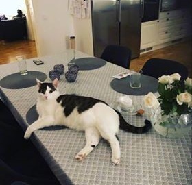 Tusse är lite blyg mot folk han inte träffat tidigare, men en riktig kelgris som gärna myser in sig på filten i soffan på kvällen. Älskar att vara ute men kommer alltid in igen på kvällen. Findus är en liten hyena som vill äta allt han kommer över. Väldigt kelen och social med de flesta. Trivs bäst inne men vill gärna ut någon runda varje dag om det inte regnar eller blåser för mycket. Jag, Pettson, är världens snällaste katt som kelar med alla och börjar spinna högt bara man tittar på mig. Myser gärna i soffan eller sängen när jag är inne. Älskar att vare ute men kommer alltid hem på kvällen.