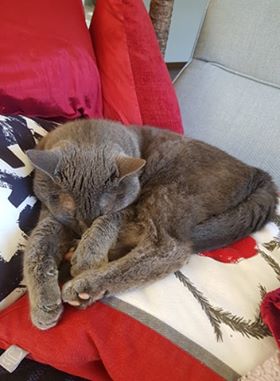 Jag var runt åtta år när min familj adopterade mig. Gillade att sova och kela men på mina egna villkor. Jag ÄLSKADE kattgodis och tiggde gärna ost från frukostmackan varje dag. Något annat jag gjorde varje dag var att ta hem presenter till min familj i form av sorkar, möss och någon enstaka ödla. Vare sig grannen eller familjen har haft möss i huset sedan jag flyttade in.