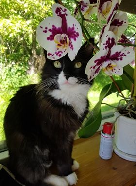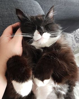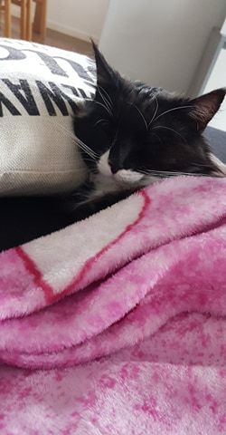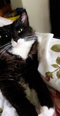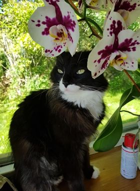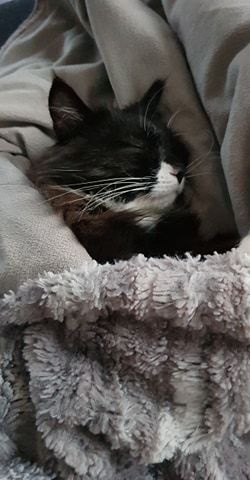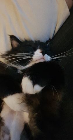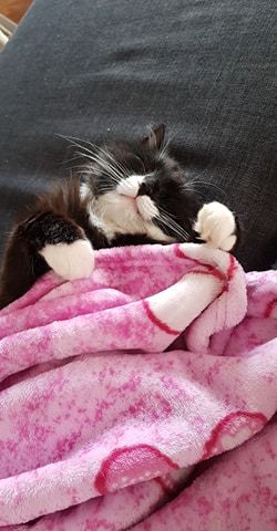 Mjau! Mitt namn är Kalle och jag blev adopterad av mamma Emma och pappa Tim i juli, bor numera i Förslöv. I början var jag lite försiktig, men nu är jag lite vild och galen. Det bästa jag vet är att prata, mysa i soffan/sängen och springa rally i trappan/åka på mammas matta. Jag har även ett nytt favoritgodis som är Dreamies med ostsmak. På dagarna sover jag mest och vill mysa, på nätterna är det bus och äventyr som gäller! Kramar från Kalle!