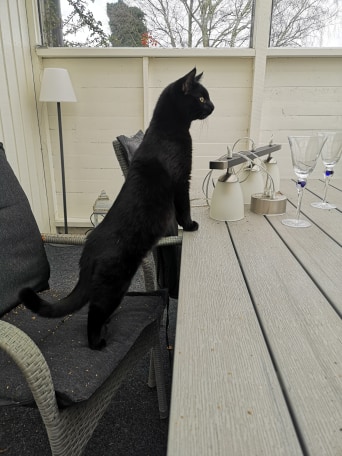 Panter är namnet, jag är en lekfull liten kille som gärna busar hur mycket som helst! Jag älskar att bli kliad och mysa till det på morgonen. Har inga problem att vara den som väcker familjen för att få en mysig stund på morgonen. En ny favoritsyssla är att vara ute men endast när det är tillräckligt vindstilla och soligt ute, annars är jag lite kräsen.