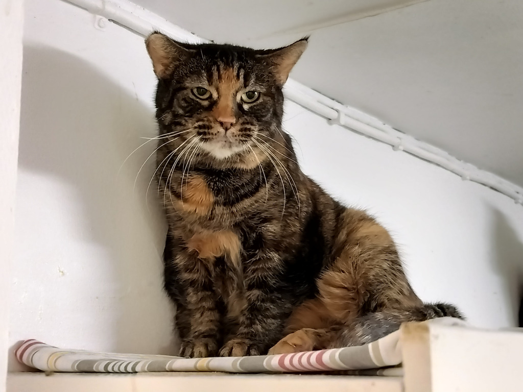 Har ni sett så söt? Flisan är en charmig, försiktig tjej som letar efter ett hem där hon kan känna sig trygg. Trivs med andra katter. Bor med Kajsa.