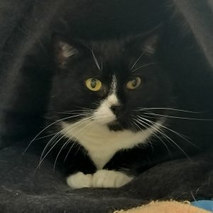 Den här sötnosen söker hem! Hon skulle behöva ett lugnt hem där hon kan fÃ¥ komma fram i sin egen takt. Hon är försiktig men gosig och lekfull när hon blivit bekväm. Passar bäst som ensamkatt.