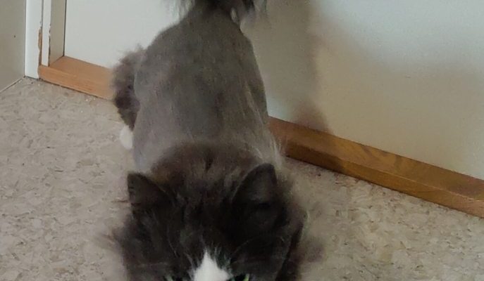 Tänk vad skönt det är när alla mina åtta ungar nu har flyttat….Då ligger man här på kontoret på djurhemmet och tvättar sig i lugn och ro…Bara schillar och...