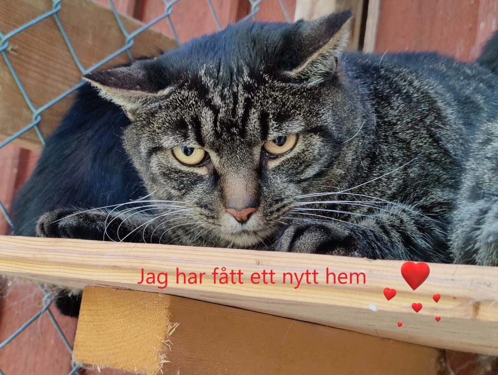 Jonathan kom med fem kompisar till vårt djurhem då deras matte blev sjuk och inte längre kunde ta hand om dem. Vi vet inte hur gammal han är.