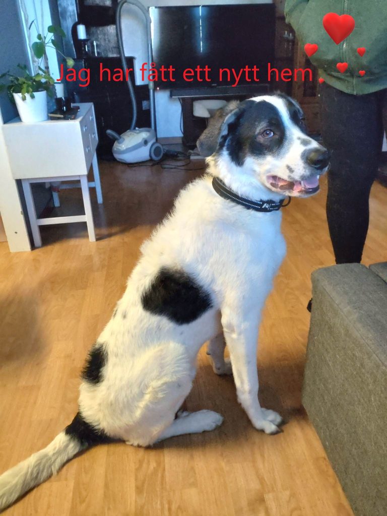 Han har inte förstått att han inte är en liten valp längre och har problem med att han gärna vill bita i händer och fötter. Inte på något aggressivt sätt utan mer på ett lekfullt sätt, men den nya ägaren måste vara beredd att arbeta med det och att aktivera honom.