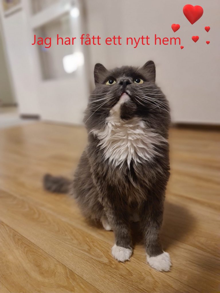 Sylvester är en cirka 10 år gammal katt som levt ett tufft liv som hemlös tills han en dag dök upp i min trädgård. Trots eftersökningar fann vi ingen ägare och då han dessutom saknade chip misstänkte vi att någon ägare inte heller funnits, vilket bekräftades av grannar som menade att han dragit runt i området under flera år. Hösten och kylan kom och Sylvester fick flytta in hos oss och efter en tid av socialisering har han blivit undersökt av veterinär som fastställt en ungefärlig ålder, behandlat för öronskabb och där han också blivit kastrerad, vaccinerad och chippad. Nu är Sylvester redo att hitta sitt alldeles egna hem där han får stanna resten av sitt liv.