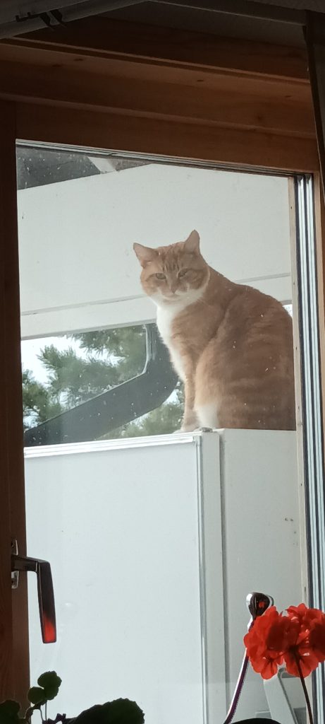 Astor (tidigare Röding) har full koll på husse i köket och vad som händer på verandan och i grässlänten nedanför.