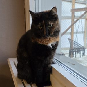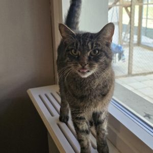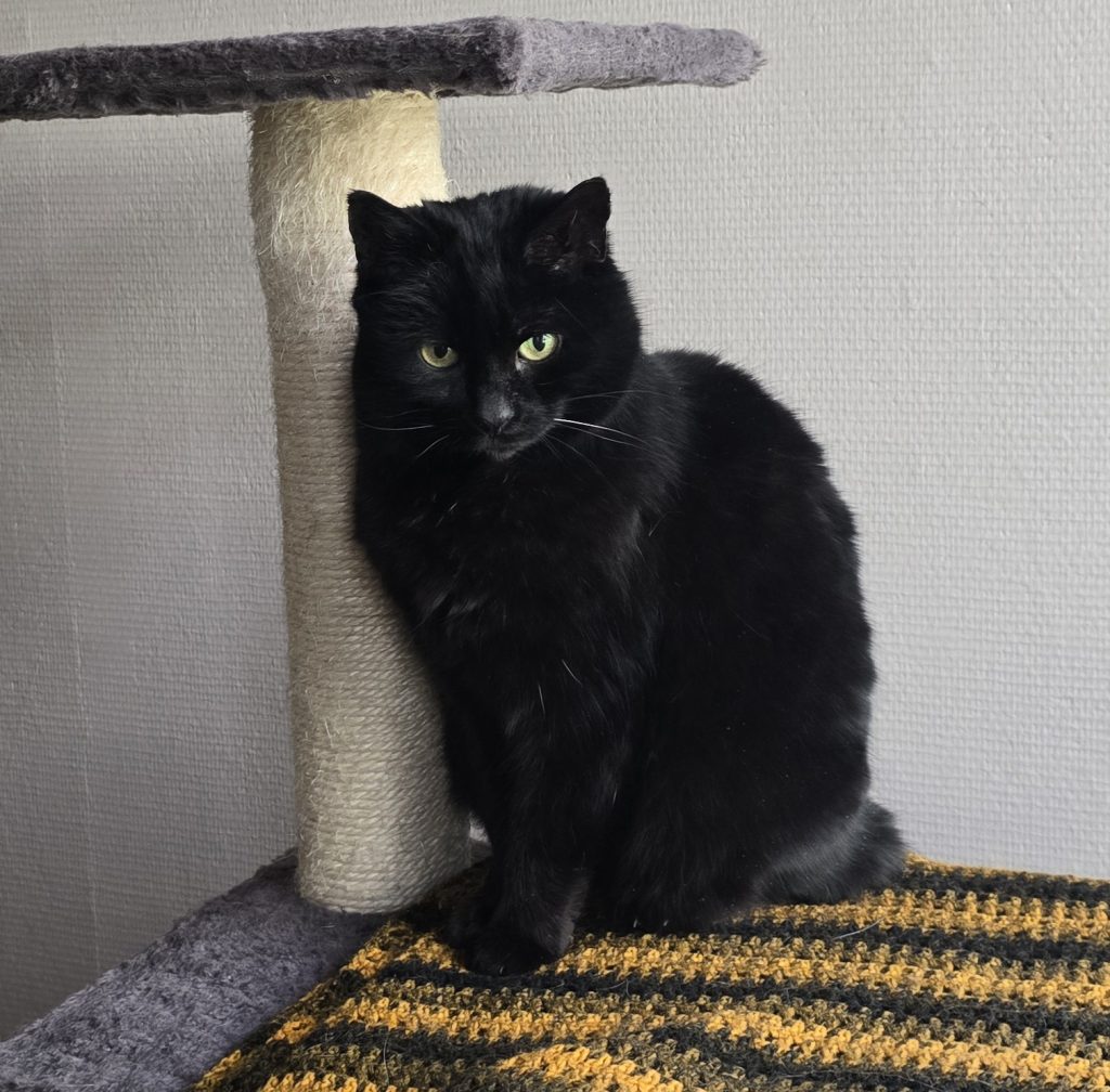 Lovisa är en honkatt med okänd ålder och ett mjukt och försiktigt hjärta. Hon är lite blyg i början, men väldigt snäll. Om man närmar sig henne lugnt låter hon sig bli klappad och visar sin fina, kärleksfulla sida.
