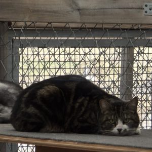 Lovisa har haft ett tufft liv och kom till Djurskyddet tillsammans med två andra hankatter. Alla tre hade problem med sina öron, men de har nu blivit behandlade och läkta. Lovisa kommer dock behöva fortsatta öronkontroller ungefär en gång per år för att säkerställa att hon mår bra.