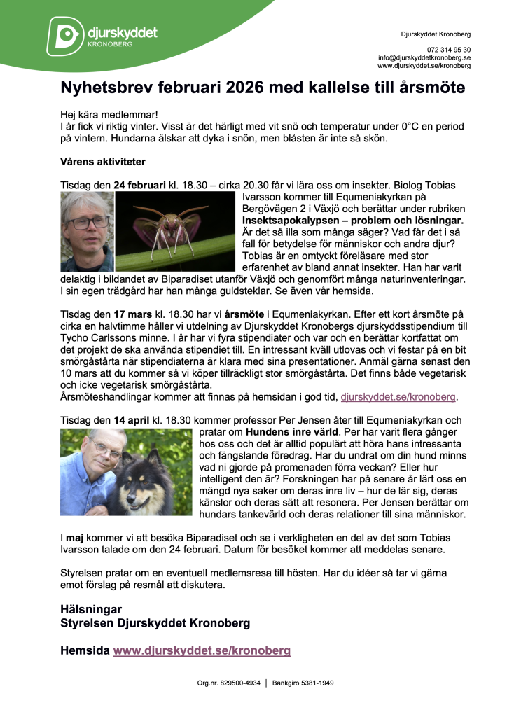 Här nedan kan du läsa vårt senaste nyhetsbrev, februari 2026. Klicka på nyhetsbrevet (bilden) nedan för större version.