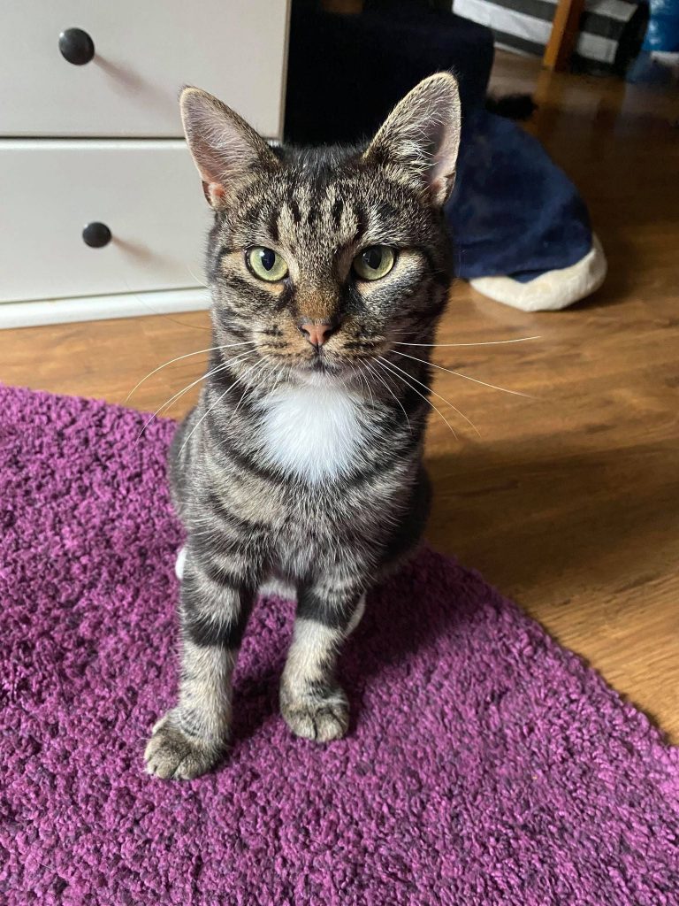 Bsasilika är en söt liten tjej på cirka 1 år, med humör och mycket bus i sig. Hon är nu redo för adoption. Basilika har god aptit, både på mat och livet. Gärna fart och fläkt hela tiden och är väldigt nyfiken av sig. Kelgris på sina egna villkor och då främst kli på magen. Att bli buren är inte favoritsysslan och lite knorr kan förekomma men efter en stund inser hon att det är mysigt att kela och lägger sig tillrätta. Sova i sängen är mysigt och vattenfontänen är en favorit att dricka ur. Tycker om sällskap och leker gärna med en kattkompis