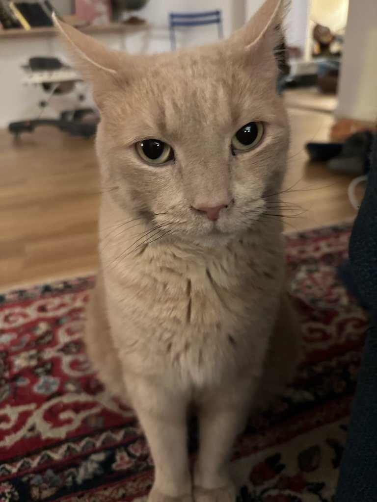 Jag är en otroligt ståtlig och vacker katt, om jag får säga det själv. De säger att jag ser ut som ett riktigt lejon! Jag är inte riktigt så modig som ett lejon och håller mig lite på min kant, men när du väl vunnit min kärlek är jag gärna med där det händer, och kela är mysigt- när jag vill. Jag vill gärna bo i ett ganska lugnt hem. Jag tycker om att ligga i sängen, gärna under täcket, det känns tryggt och bra. När jag är på lekhumör måste jag säga att prassliga saker är helt oemotståndliga.