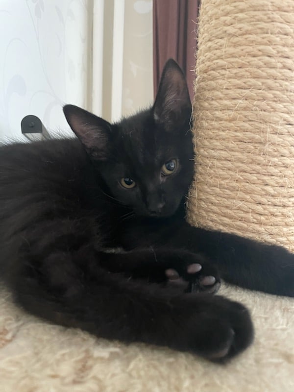 Elsa är en liten söt kattflicka född 20/4. Hon är full av fart och fläkt men med ett stabilt lugn. Det är nog inte mycket som rubbar denna lilla tjejen. Inte ens veterinärbesöket, när hon fick sin första vaccinering, var något att bry sig om. Lugnt och stilla lade hon sig att sova i buren i väntan på sin tur. Hon kan tidigast flytta 11 augusti.