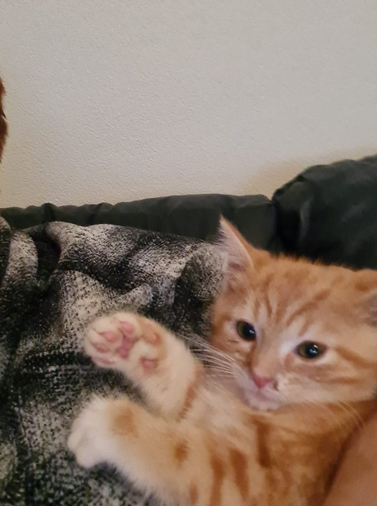 Det här är lille Gustav som kom in till oss 28/10 cirka 10 veckor gammal. Han hade ett stort bråck och kattsnuva. Denna lilla krabat har kämpat tappert och varit hos veterinären flera gånger för behandling under tiden han varit hos oss. Bråcket har opererats. I torsdags, 27/1, flyttade lilla Gustav till sitt nya hem i Landskrona. Vi önskar Gustav lycka till!