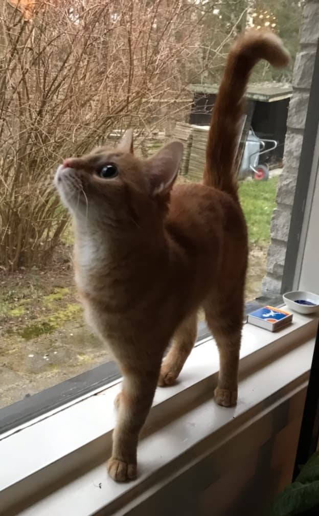 Hon är en riktig fönsterprydnad, ca 6 månader gammal. Hon spenderar mycket tid med fågelskådning i sina älskade fönster. Kommer det in någon katt i trädgården stirrar hon ut dem genom sitt fönster. Ida är en pigg och glad tonåring som lever loppan i familjen. Ligger gärna nära och är med överallt.
