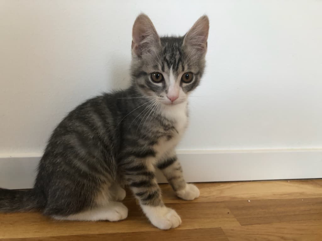 Det här är Jasper, en av Mymlans fyra ungar som togs in den 9 augusti. De finns i jourhem i Landskrona.