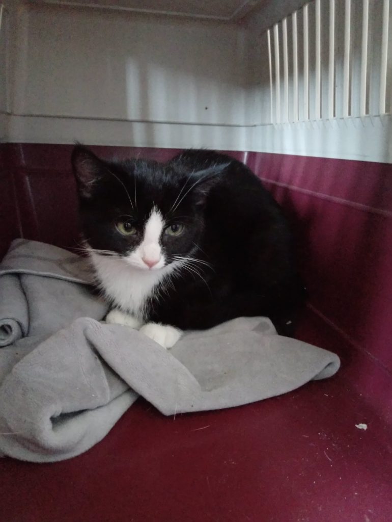 Lilla Sally hittades vid Norra Infartsgatan i Landskrona cirka 3 månader gammal. Vi blev kontaktade och hämtade den lilla 15/1 till ett jourhem där hon kunde få behandling mot mask och öronskabb, samt få hjälp att bli av med sina fästingar. Hon har också blivit vaccinerad och chippad.
