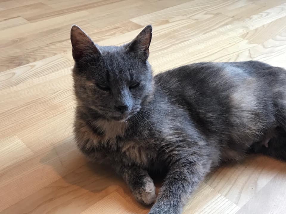 Det här är Sara som togs in i Säby, efter att ha levt ute och fått flera kullar med ungar, varav de flesta fått en förtidig och plågsam död. Hon togs in tillsammans med sina ungar som nu också fått egna hem. Sara var sliten och inte helt frisk men har nu blivit behandlad, kastrerad och chipmärkt. Hon har blivit adopterad av sitt jourhem i Säby och kan nu efter behandling och kastrering få fortsätta att leva som innekatt med tillgång till utevistelse vilket hon trivs bäst med. Lycka till lilla gumman