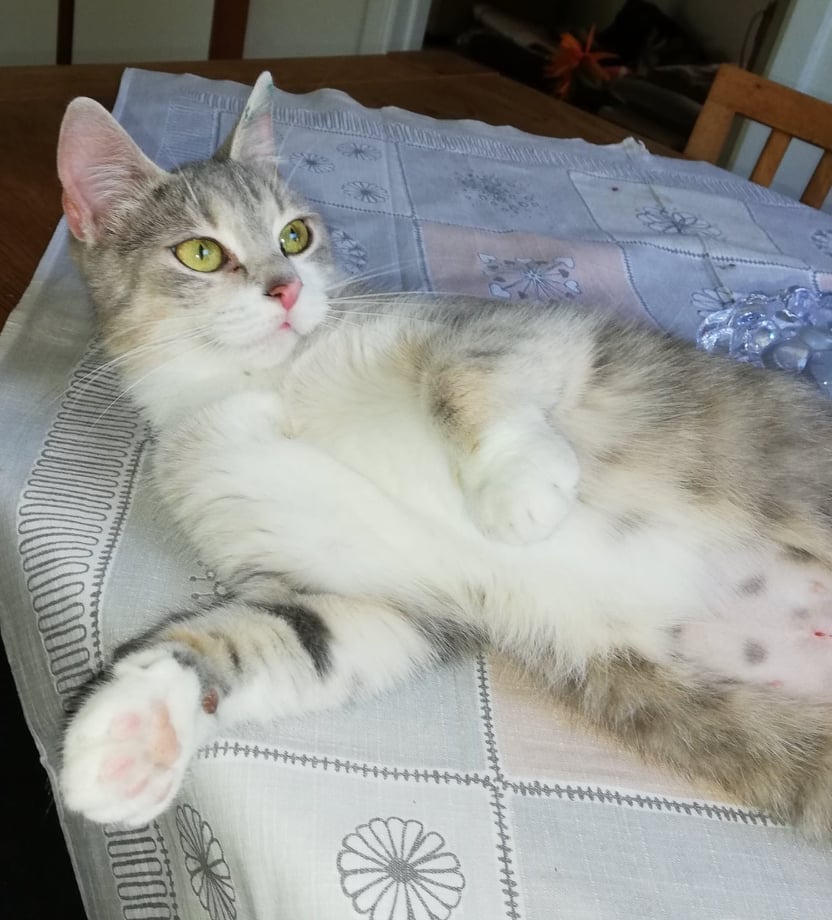 Semlan kom in till jourhemmet i Malmö den 26/9, tillsammans med sina 2 halvvuxna kattungar. Denna vackra och keliga hona kom till oss via kontakter med en annan förening. Semlan älskar att ligga på din mage och mysa. Hon ska vara med hela tiden, möjligtvis kan hon lämna din sida för att ligga i solen en stund när den tittar fram.