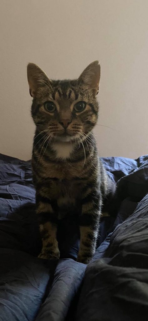 Han är kastrerad, vaccinerad 2 gÃ¥nger och chippad. Tistel, hankatt, troligen född i maj 2020, togs in 20/5 2021. Kraftigt undernärd och full med ohyra. Han är väldigt försiktig av sig och tar ett tag att komma in pÃ¥ livet. Tycker om att busa och leker gärna och mycket. Mysa är nÃ¥got han gör när han känner sig bekväm och ligger dÃ¥ gärna i sängen. Är inte sÃ¥ glad för hastiga rörelser utan springer dÃ¥ och gömmer sigÂ