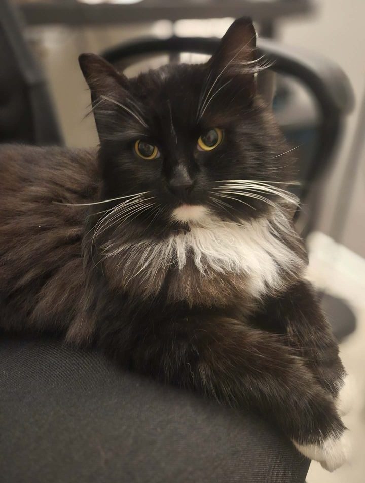 Jag är en lite osäker katt. Det beror mest på att det finns andra katter här i jourhemmet och det tycker jag är ett onödigt inslag. Jag gillar inte när de är för mycket rörelse utan behöver lugn och ro. Alltså inte för små barn. Men när de är lugnt och jag börjat lita på dig är jag mysig. Jag har lång eller semilång päls så den behöver du hjälpa mig med. Ganska enkelt men varje dag får vi ta ett litet tag med borsten. Mina favoritplatser är sängen, datorstolen och fönstret. Tycker om att titta ut och tänka på hur bra jag har det nu när jag slipper vara där ute i kylan. Jag har inte varit inne så länge men eftersom jag inte trivs med de andra katterna så behöver jag flytta till ett hem där jag kan få vila upp mig i lugn och ro och bli katt igen. Det tar tid säger människorna när man varit ute länge att landa. Jag har sovit mycket.