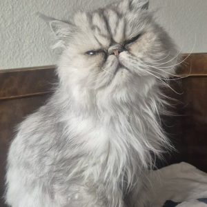 Jag heter Milla och är primadonnornas primadonna. En mogen dam i mina bästa år. Jag har inga problem med att bo med andra katter men du ska veta att kommer alltid att var nr 1. Jag är tydlig och pratglad. Det behövs en del pälsvård och det går väl så där med det. Minsta lilla knut så får du besked på att den ska inte vara där, fram med saxen, det ska vara skönt att bli kammad. Jag kräver att du kelar och pratar med mig en hel del. Ja så är det när man är primadonna. Jag leker lite med mina leksaker men annars går jag mest runt och kontrollerar så att allt är i sin ordning här hemma. Jag är inte så förtjust i blötmat utan vill ha mitt torrfoder och det ska serveras på en ganska platt tallrik för min nos är platt och då blir allting mycket lättare. Går på PeeWee-låda.
