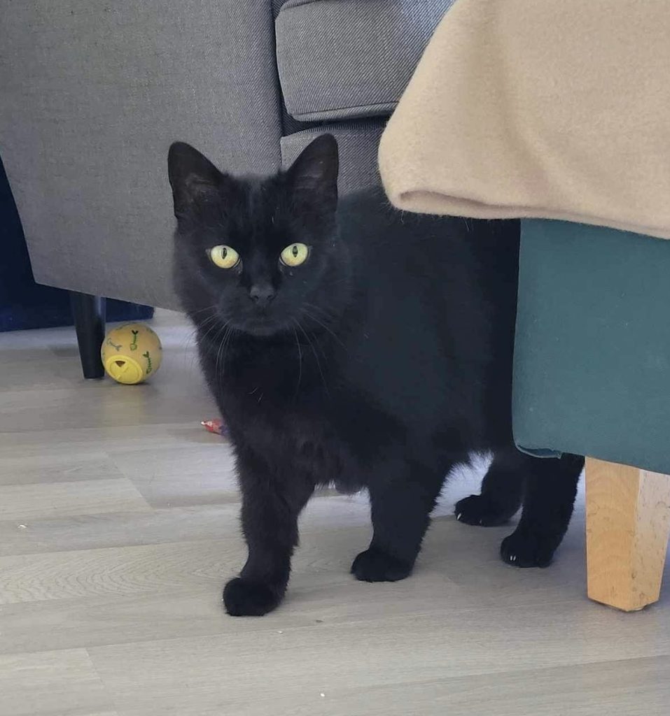 Jag skulle vilja komma till ett hem där jag får vara ensam katt och där människorna har tålamod med mig. Jag behöver tid på mig att känna tillit och trygghet. Men vem kan motstå mina vackra svarta päls och mina outgrundliga ögon.