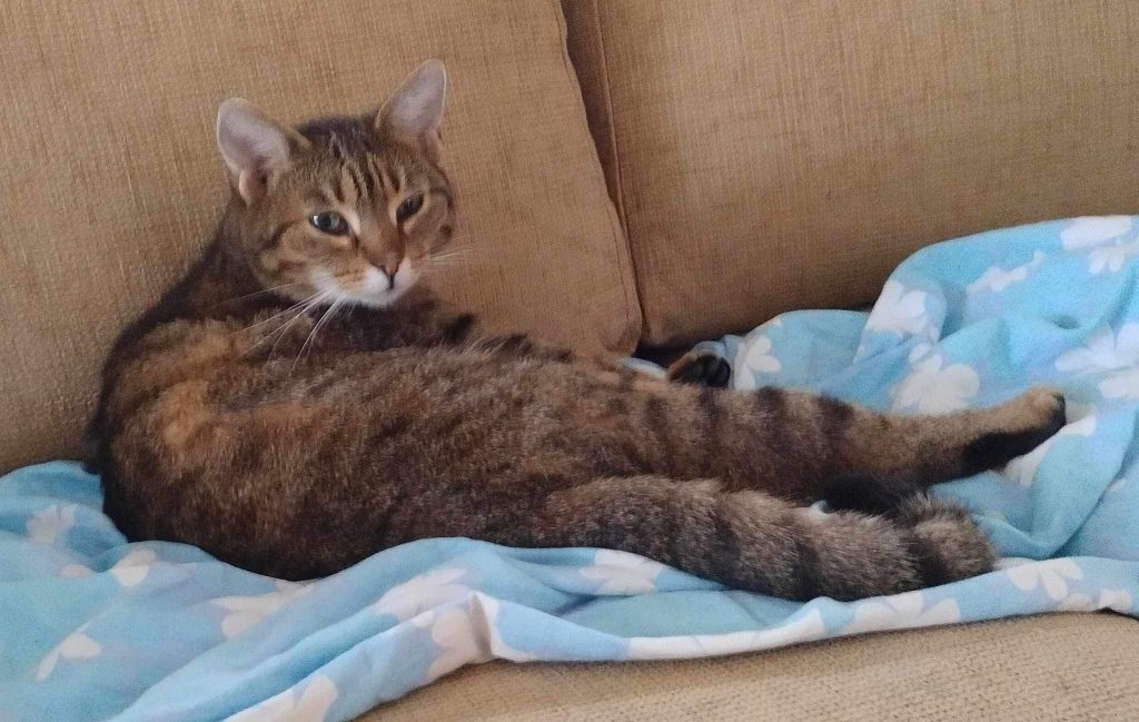 De jag bor hos säger att jag verkligen blommat ut den sista tiden. Jag har börjat uppskatta det här med att kela och jag visar det väldigt tydligt. Men det ska vara när jag tycker att vi ska kela. Jag är en nöjd katt och visar det gärna genom att ständigt ha min svans i rörelse. Jag har även börjat prata en hel del, både med människorna och med mina kattkompisar och det är ofta jag som bjuder in till lek med de andra katterna.