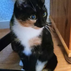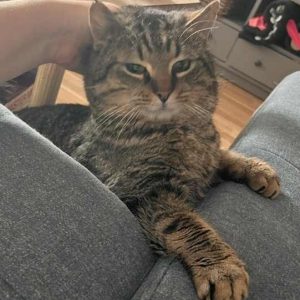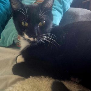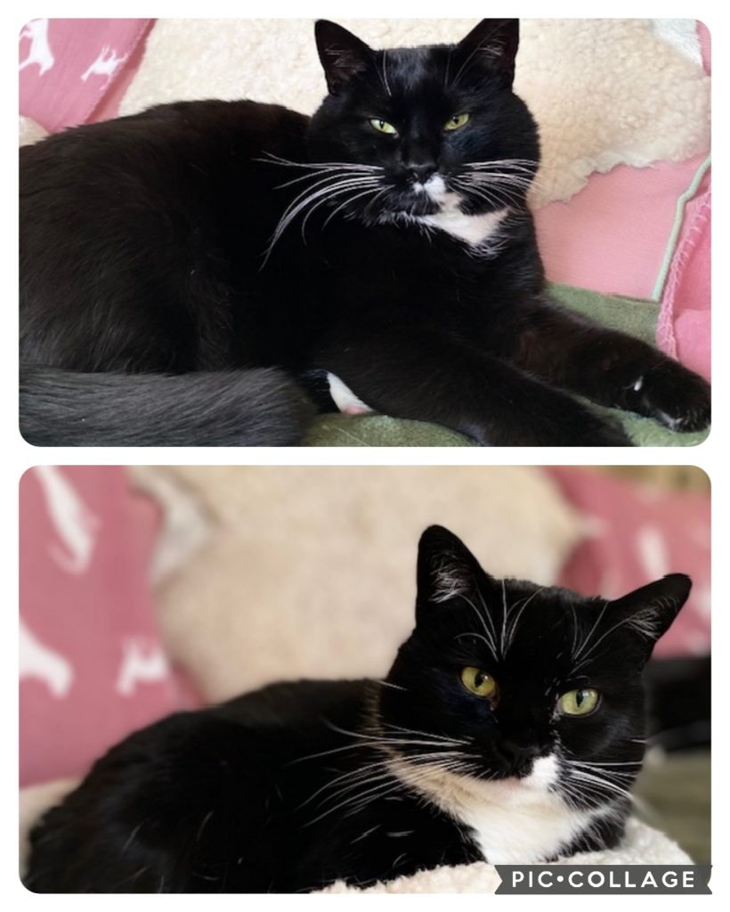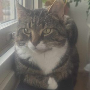 Stina: Jag är Stina, en lugn tjej på 4 år som älskar att bli kliad länge, speciellt på morgon och kväll, men inga hastiga rörelser, lugnt och fint så spinner jag tills du går din väg. Klarar även av att bli kliad på magen. För ett år sedan var jag hemlös så detta är ett fantastiskt steg för mig. Min bror Sten är burdus och skrämmer mig lite ibland med sin framfart, han är lite tokig men jag älskar honom. Jag är dock den kloka kluriga kisen i familjen. Sover mycket, men när jag väl kommer igång att busa så är det fart på mig. Jag älskar kokt fisk när det bjuds, jag har en lugnare framtoning än min bror, tar dagen med ro. Jag sitter inte i knäet men ligger gärna i närheten av matte, gärna i fönstret eller en härlig fåtölj. Jag vill ha tillgång till utevistelse. Jag vill flytta tillsammans med min bror Sten. Vi är oskiljbara.