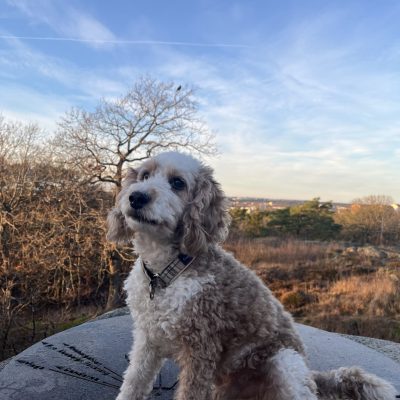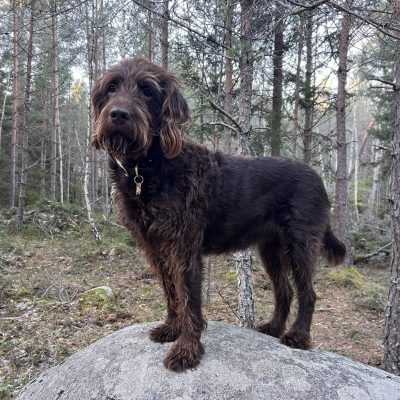 Jag vill bara gömma mig så långt bort från det otäcka ljudet. Jag blev skrämd av någon som smällde precis brevid mig och nu kan jag inte sluta vara rädd även fast vi försöker träna (vi har testat allt). Många dagar innan och många dagar efter smäller det och jag skakar av rädsla men speciellt när det kommer många smällar efter varandra. Att tänka på mat det får jag göra när det lugnat ner sig.