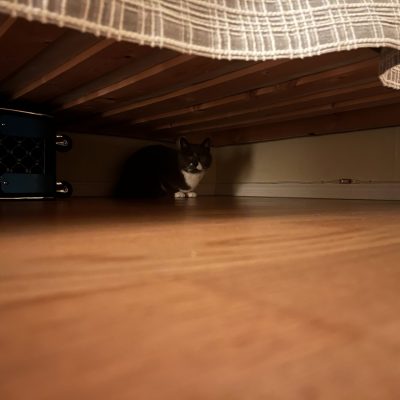 Mina katter blir så rädda för alla höga smällar från fyrverkerierna. De reagerar blixtsnabbt och deras hjärtan bultar hårt och snabbt. De kryper in under badkaret på vår övervåning, men jag som människa upplever att det låter högt där (nära taknock). Jag har ordnat en krypin av kartonger. Katterna har valmöjlighet att krypa in i kartong-gömman och ligga på fleecefilt. Deras två kattburar finns strax intill, som de även kan söka sig in i.