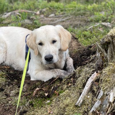 Får bära ut 25kg i skogen, annars vägrar han följa med.