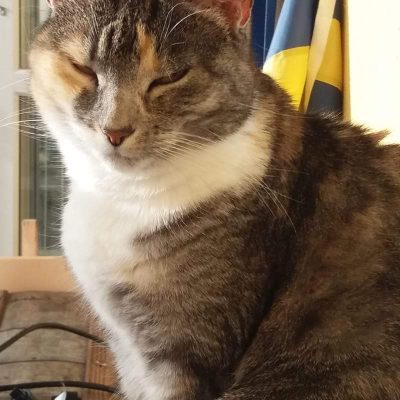 Den tuffaste av våra 6 katter men blir likväl livrädd för smällare och raketer.