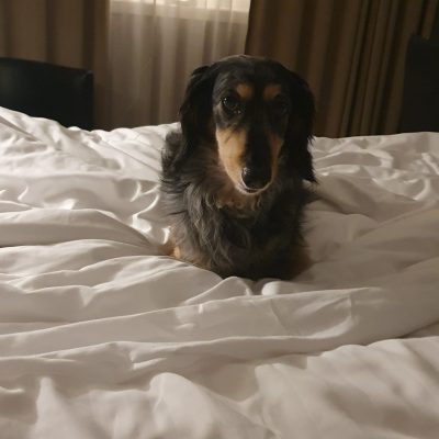Blir lite rädd. Kryper in i sin koja och voffar lite…