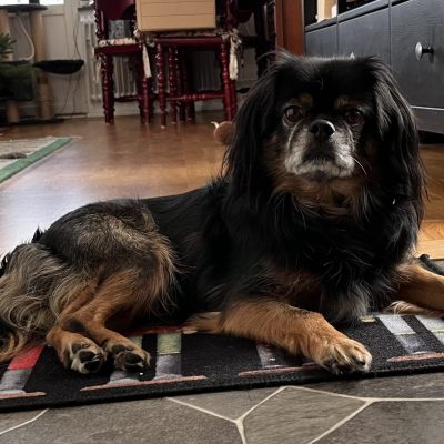Vågar inte gå ut och kissa el göra andra behov då det smälls fyrverkerier av olika slag till och från dagligen sen den 23/12. Skakar, gömmer sig och följer mig vart jag än går. Vill inte bli lämnad ensam