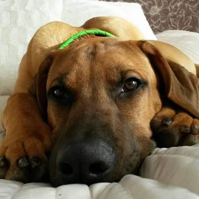 Booster är rädd för smällar och plötsliga höga ljud, och kommer behöva lugnande under nyårskvällen