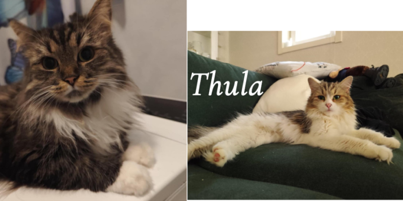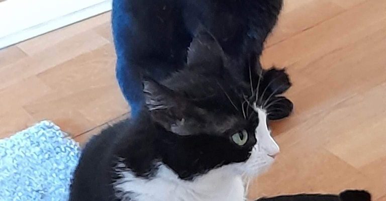 Jack cirka 4 år är mer trygg och säker i sig själv medan Jinx cirka 2 år är lite mer försiktig i början men nyfiken. När besök har kommit till jourhemmet har Jinx varit först fram för att hälsa för att få lite gos.