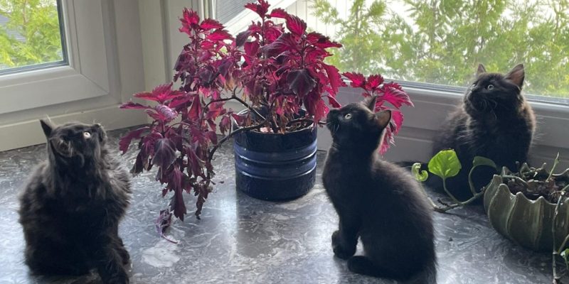 Grabbarna gillar att sitta i fönstret och spana på omgivningen, de tycker även om att vara på balkongen.