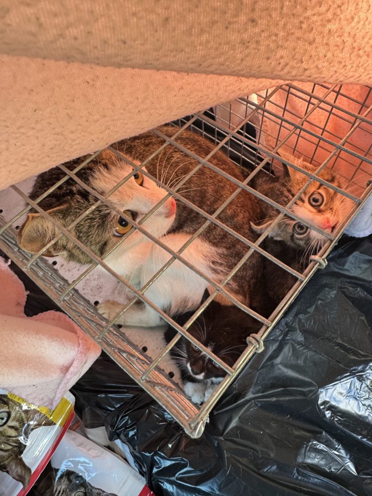 Manon & Felicia har fångat in en kattmamma med 4 bäbisar under ett hus, i samarbete med Djurskyddet Karlstad. De har blivit matade av grannarna i fällan för att göra dom trygga. Manon har fått bilder dygnet runt från en åtelkamera, de är nu i jourhem.