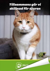 Djurskyddet Sverige är en ideell organisation som arbetar för ökad djurvälfärd för alla djur. Vi är den enda svenska djurskyddsorganisationen som både hjälper djur praktiskt och samtidigt arbetar med politisk påverkan. Vi har drygt 11 500 medlemmar och omkring 40 lokalföreningar över hela landet. På lokal nivå arbetar majoriteten av våra föreningar med praktisk omplaceringsverksamhet av främst katter, genom djurhem och jourhem. På nationell och internationell nivå arbetar vi med påverkan gentemot politiker, myndigheter och allmänhet.