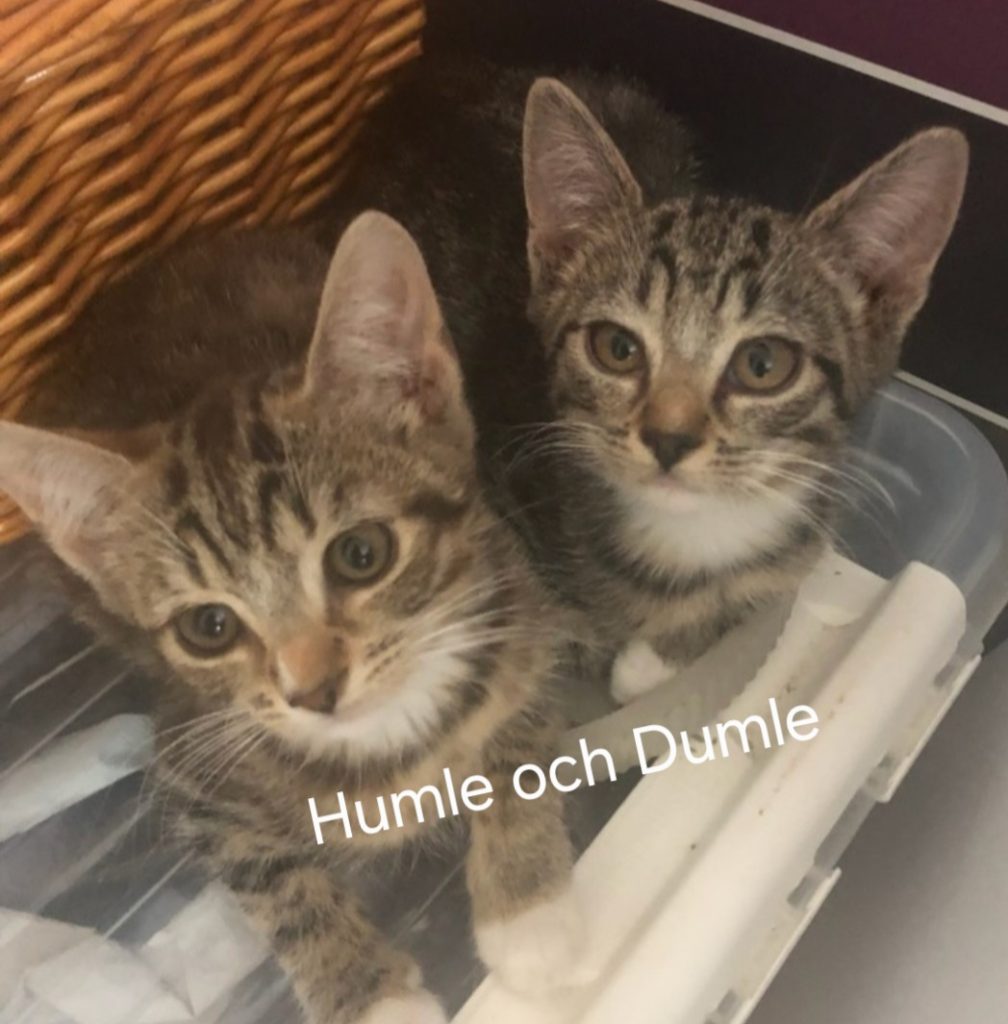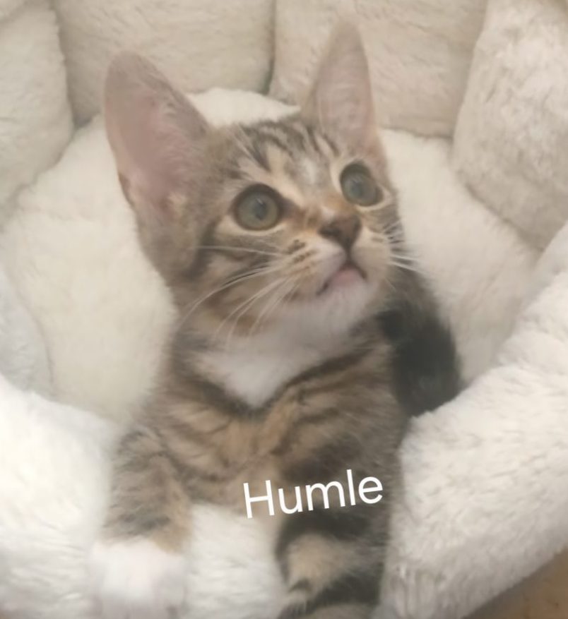 Humle är en nyfiken kille med mycket energi. Älskar att busa med brorsan Dumle och att leka med fjäder-spön. Lite försiktig med oss tvåbenta, men låter sig hanteras utan problem. När han sover hittar man honom nästan alltid tätt tillsammans med Dumle.