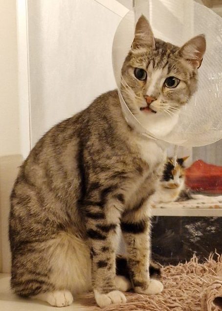 Här har vi en liten otursgrabb som fått klippkort hos veterinär för att andra hankatter i hans område är elaka mot honom.