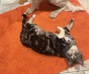 Här har vi en mysig och trevlig katt som går bra ihop med hund.