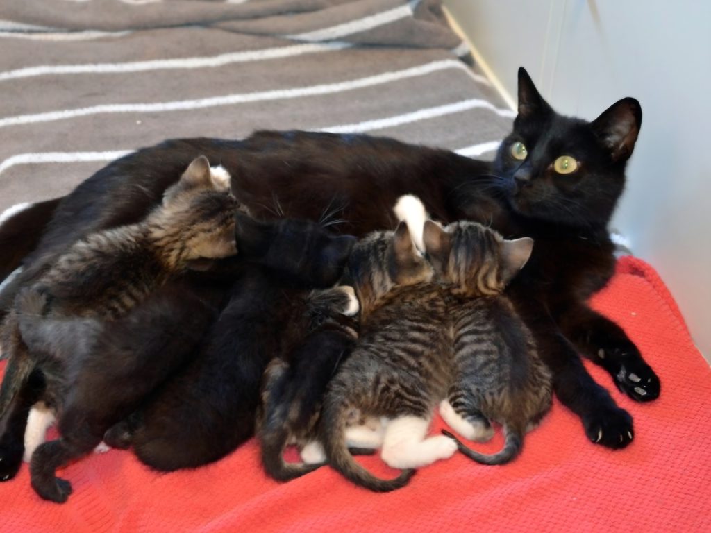 När det gäller hennes ungar så är 2 av dem lyckliga att få stanna kvar i jourhemmet samt 2 har hem som väntat väldigt länge på kattunge. Resterande 2 kommer ut på hemsidan när tiden är inne men vi har en liten skara som står i kö för kattunge med.