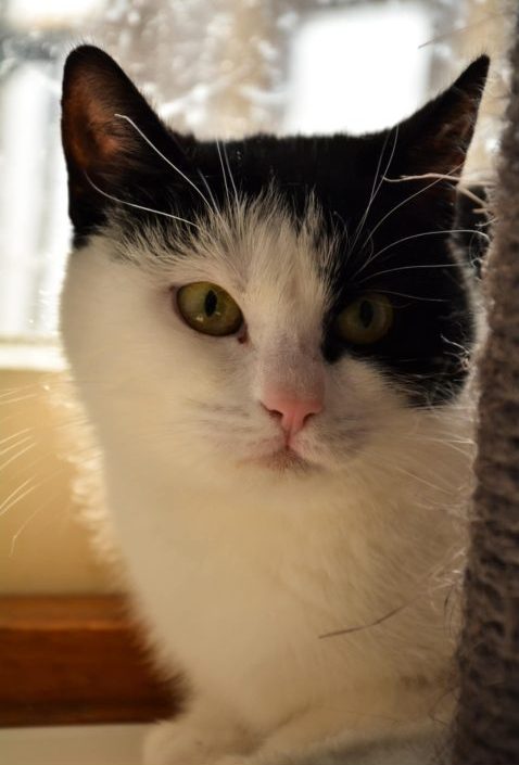 Hon går att klappa och gosa lite med och tror hon kommer att blomma ut och bli en riktigt trevlig katt. Hon söker en familj som är lugn och hjälper henne att utvecklas vidare och få känna sig trygg med sin familj