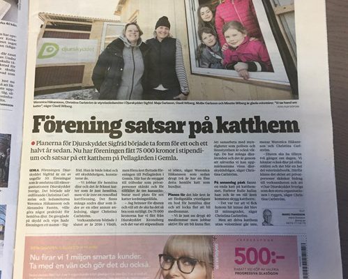 På Djurskyddet Kronobergs årsmöte fick vår förening äran att ta emot ett stipendium. Pengarna kommer gå till renoveringen av vårt katthem i Gemla. Stort TACK till Djurskyddet Kronoberg som...